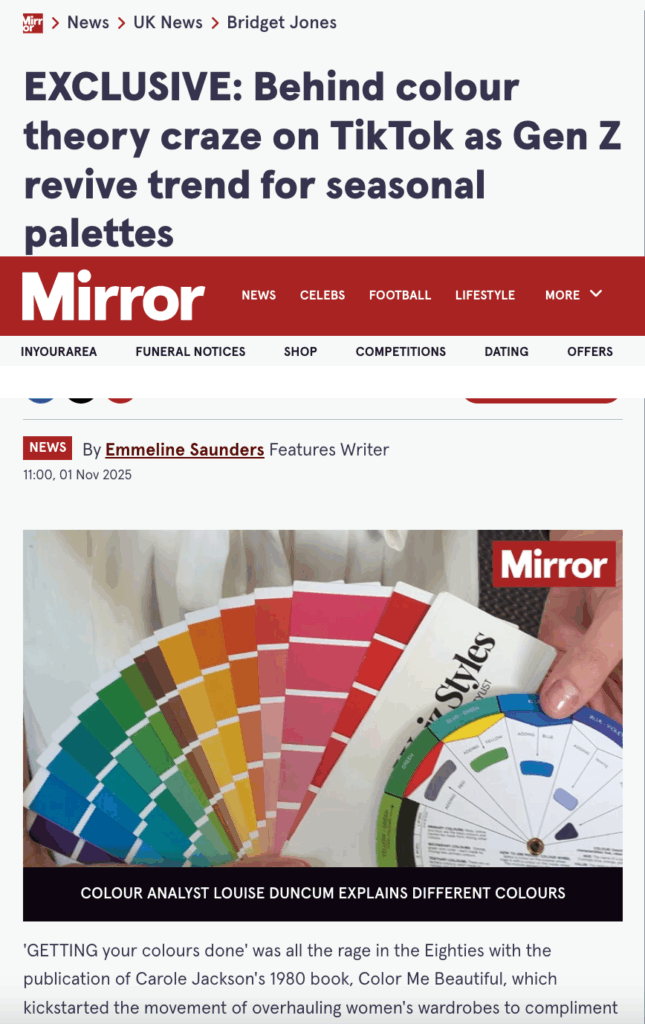 We spent a lovely morning exploring the power of colour psychology and why colour analysis is having such a big comeback. A few weeks later, the double-page feature went live in print and online, all about how discovering your seasonal colour palette can unlock your style confidence.