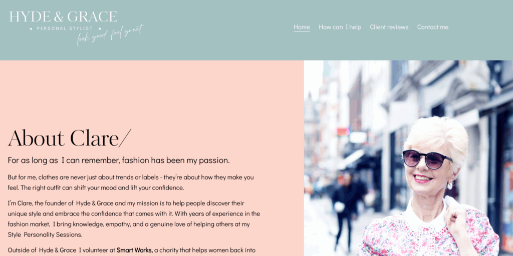 “About 10 years ago we were returning from a fabulous holiday in France and I had finished my book. Inspired by the beautiful boutiques on Isle de Re my mind was lost in setting up my own business. Hyde is my married name, however so many women hide behind their clothes and are not confident to show the best version of themselves. Grace (ful) means having elegance and poise and I hope my clients leave a session with a new understanding of their own elegant style so that’s how HydeandGrace was born!”